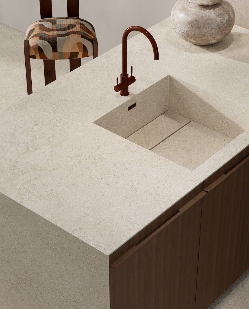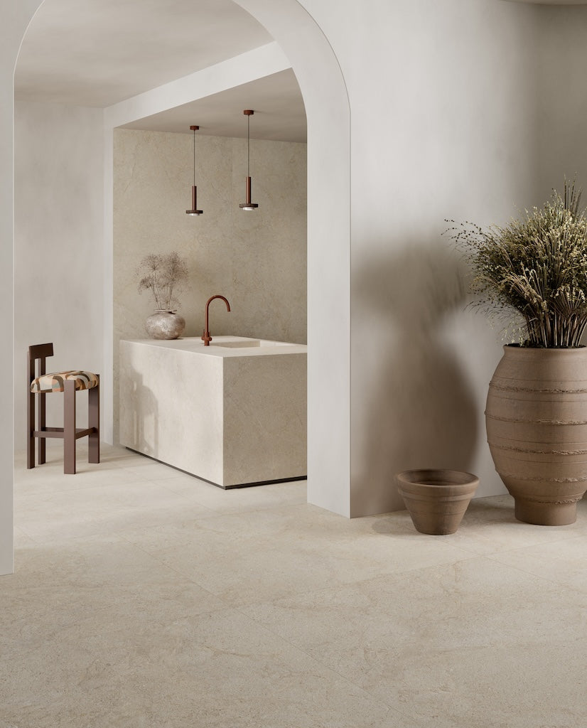 Cocooning von Pastorelli interpretiert das Konzept des Wohnens als ruhigen Rückzugsort und verbindet natürliche Steinästhetik mit zeitloser Eleganz. Die Kollektion basiert auf der Neuinterpretation eines seltenen Natursteins und zeichnet sich durch eine gleichmäßige, feinkörnige Oberfläche mit subtilen, tonalen Aderungen aus. Die verschiedenen Standard- und Großformate ermöglichen flexible Gestaltungslösungen für unterschiedlichste Raumkonzepte.