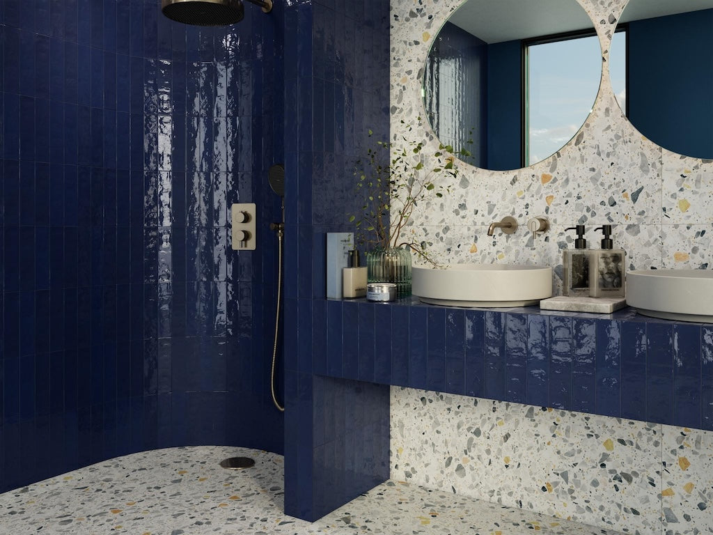 • Warme Terrazzo-Optik mit mineralischem Tiefenspiel
